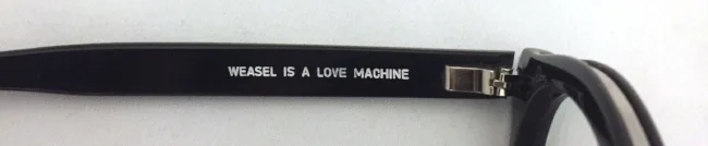 After mocking up a few prototypes, Sara was ready to start crafting the actual pieces complete with her signature, personalized inscription – the swaggering assertion that “Weasel is a Love Machine”, Love Machine derived from the film’s working title during production.
